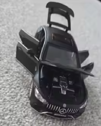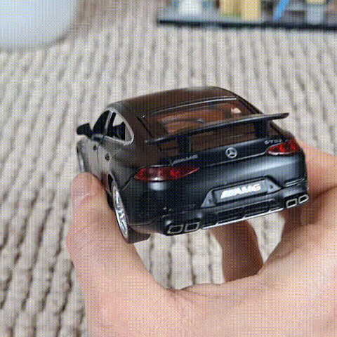 Nasz model Mercedes-Benz AMG GT63 daje klimat prawdziwego samochodu, bo to nie jest tylko ozdoba na półkę. Metalowa karoseria jest przyjemnie ciężka w dłoni, detale są dopracowane, a po otwarciu drzwi możesz zajrzeć do środka. Do tego dochodzą działające światła i efekty dźwiękowe, które uruchamiają się przy otwieraniu drzwi — i właśnie to daje największą satysfakcję